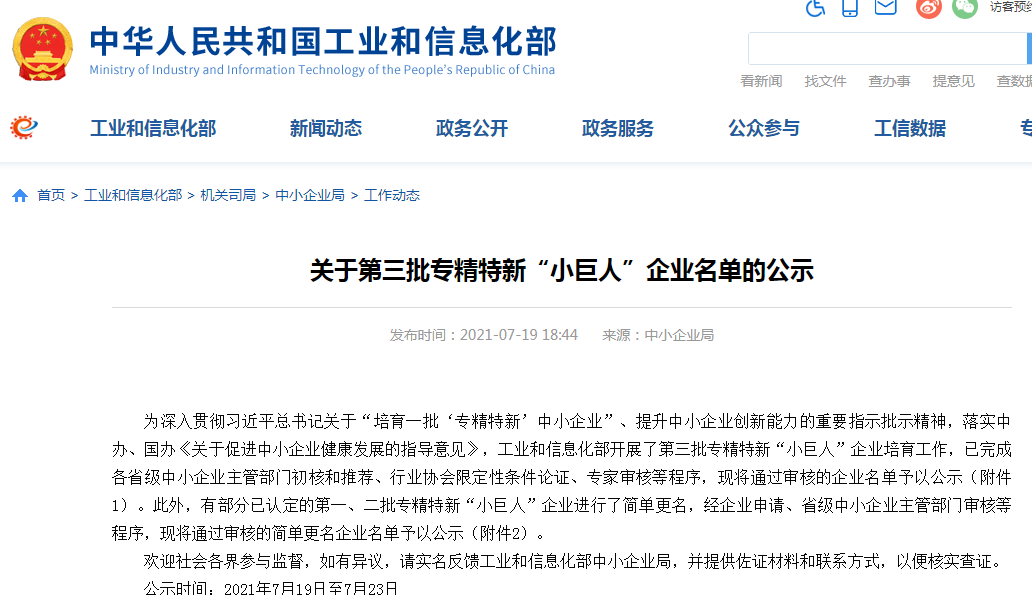 專精特新企業(yè)是指具有“專業(yè)化、精細(xì)化、特色化、新穎化”特征的中小企業(yè),而國(guó)家級(jí)專精特新“小巨人”是專精特新企業(yè)的最高榮譽(yù)稱號(hào),從省級(jí)專精特新“小巨人”企業(yè)中篩選,經(jīng)國(guó)家工信部審核確認(rèn)后發(fā)布。